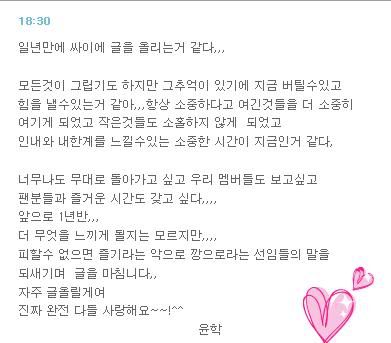 無論有多麼想重回舞台 想念著我們成員們 想念和哥迷們度過的快樂時光....