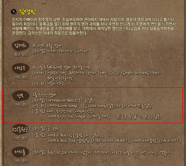 演員名單 : 朴海美、張慧珍、智妍(T-ara)、孝敏(T-ara)、崔秀英、李章宇、尹晟模(超新星)、
